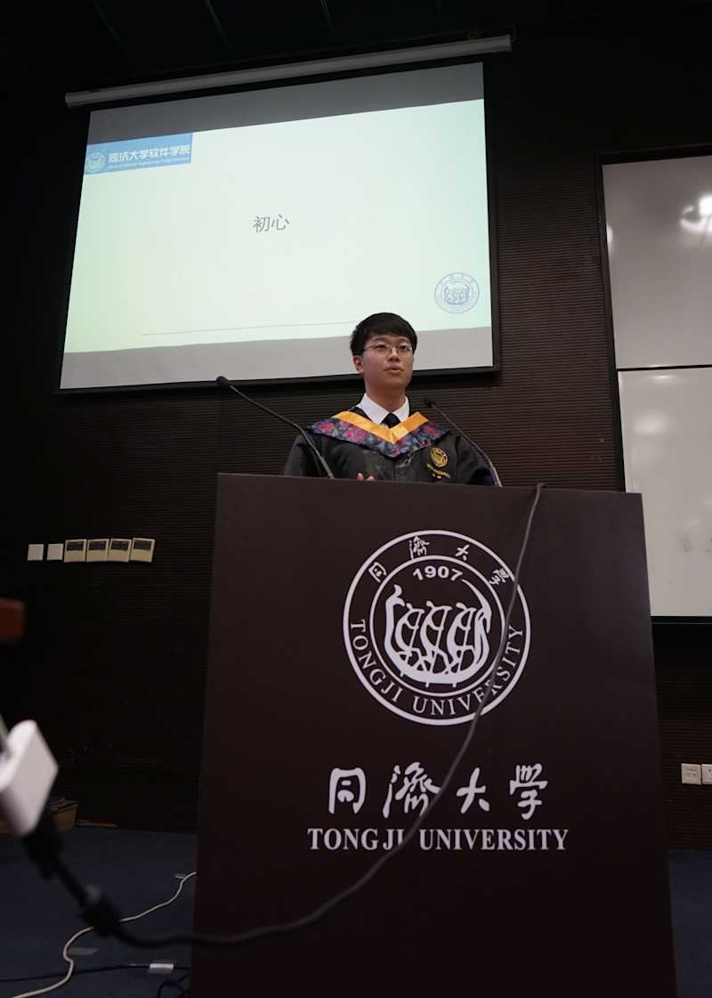 同济大学软件工程专业数字媒体方向;软件学院学生会主席团成员、组织部部长;软件学院合唱团艺术指导;「同济小软家」公众号“追光者”系列发起人